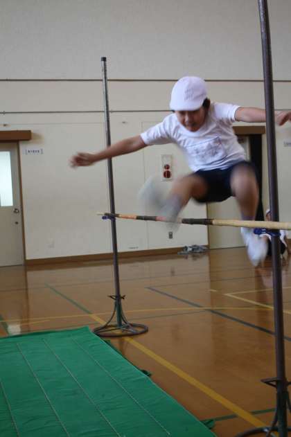 目標の高さを,自分の身長と50m走のタイムから割り出して設定し,練習をしています。