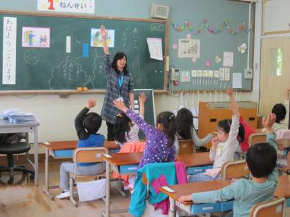 1年1組では,朝の挨拶ができたかどうかを確かめていました。