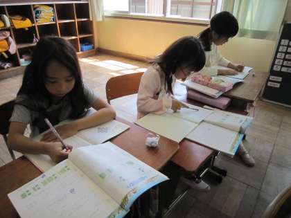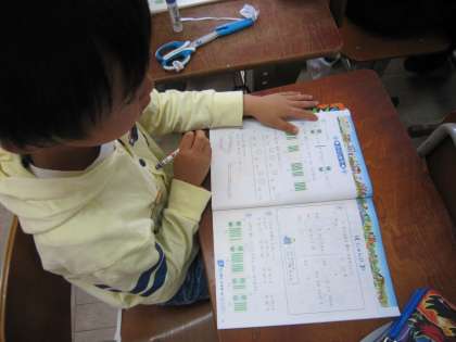 子ども達は,復習をするために数図ブロックの絵をノートに貼っていました。
