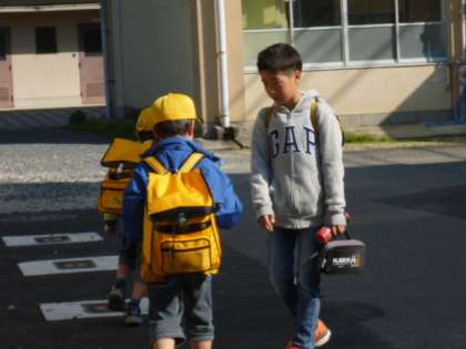 正門を少し入ったところで,6年生のお兄さんが「教室,自分たちでいけるか?」「いっしょに行こうか?」と声をかけていました。