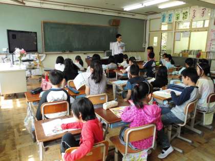 交流クラスにて一年生を迎える会で歌う「はじめの一歩」を練習しました。