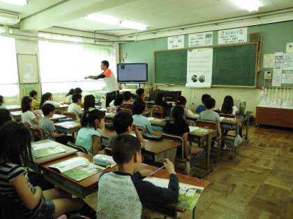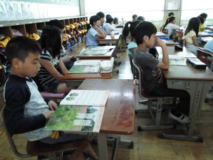 交流クラスにて,春の小川を歌いました。階名で歌っています。