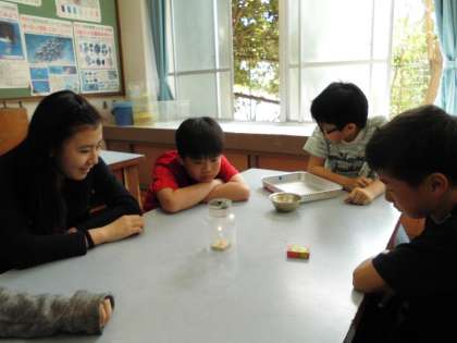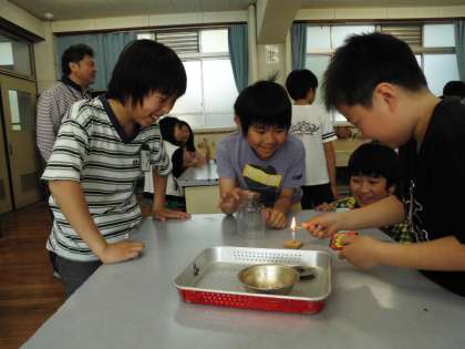 理科の学習ではものが燃えるには何が必要なのか,実験を通して調べていきます。