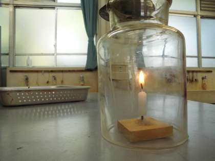 理科の学習ではものが燃えるには何が必要か実験を通して調べています。