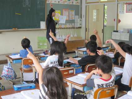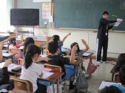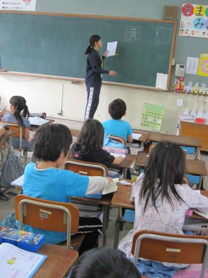 書き順を確かめた後,みんなで書き順通りに指で書いていました。