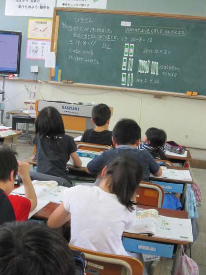 2年2組では,算数で「ひき算」の学習をしていました。
