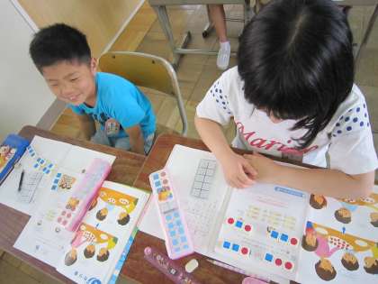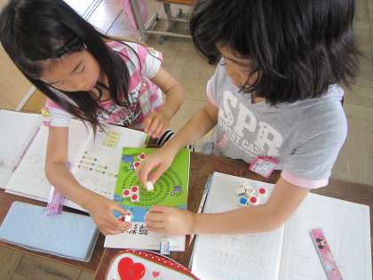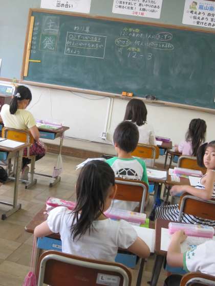 今日は,「12このあめがあります。一人3こずつに分けると,何人に分けられますか。」という問題に取り組みました。