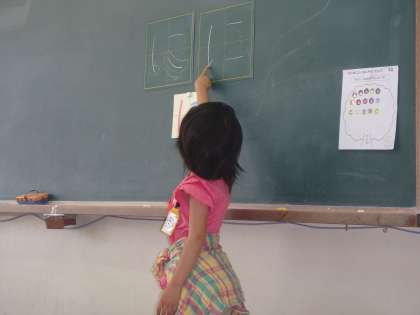 発表するときは,「指を指して」「前を向いて」など,