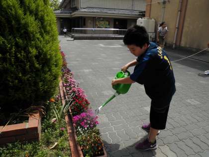 「金曜日なので僕の登番だ。」張り切って水撒きをしました。