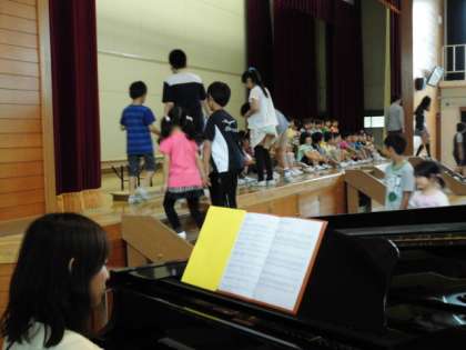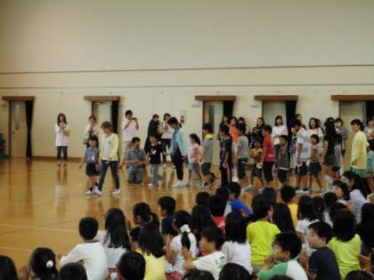5月20日(水)自由参観日の5校時,体育館で児童会主催の「1年生を迎える会」がありました。