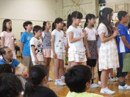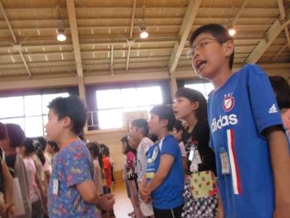 五年生では「Believe」,4年生では「はじめの一歩」を歌い,一年生を迎える会をしました。