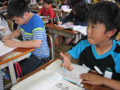 今,6年生は,国語で「時計の時間と心の時間」という教材文を使って学習しています。