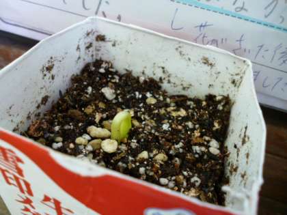 育てている「ツルレイシ」から,芽が出ました!