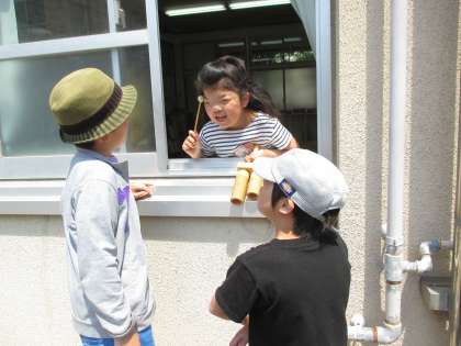 外に出て散歩をしたり,教室で楽器を鳴らしたりして過ごしました。