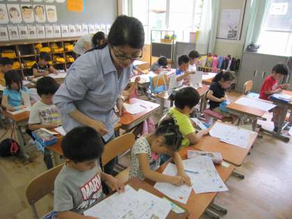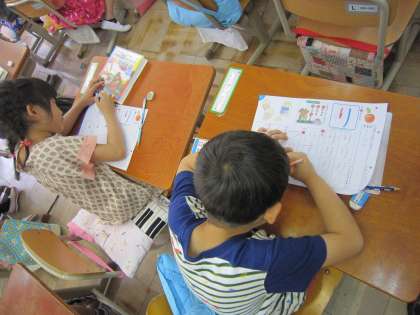 1年生は,ひらがなの練習をしていました。
