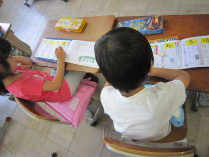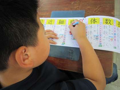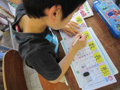 2年生2組では,漢字ドリルを使って新しく学習した漢字の練習をしていました。