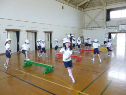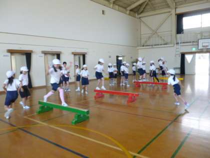 今日は平均台を使って体ほぐし運動を行いました。