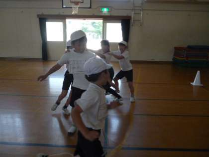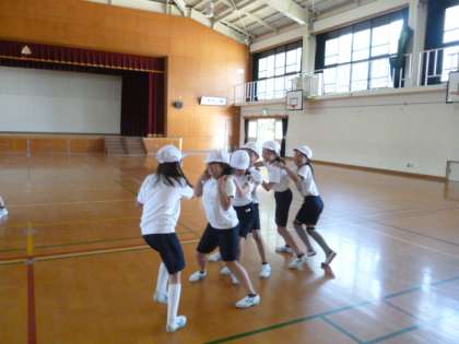 一番後ろの人にタッチするのに,フェイントをかけたり,ひたすら追いかけたり,体育館の中を激しく動き回っていました。