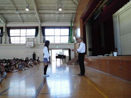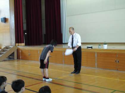 今日の朝会ならぬ昼会では,校長先生より6年生に対して,『学校賞』をいただきました。修学旅行での頑張りを評価していただきました。