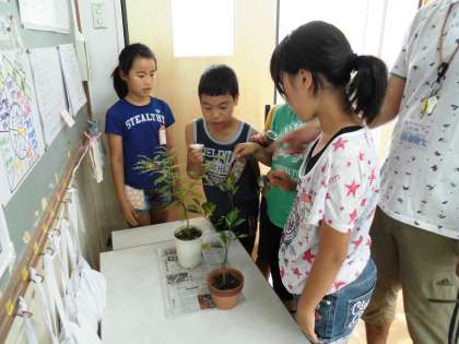 理科はアゲハの幼虫を地域の方が届けてくださったので,さっそく観察しました。
