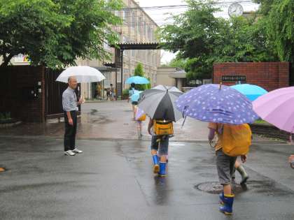 子ども達は傘をさしての登校となりました。