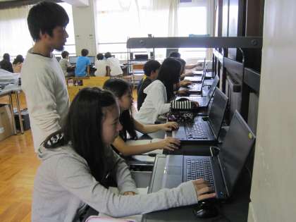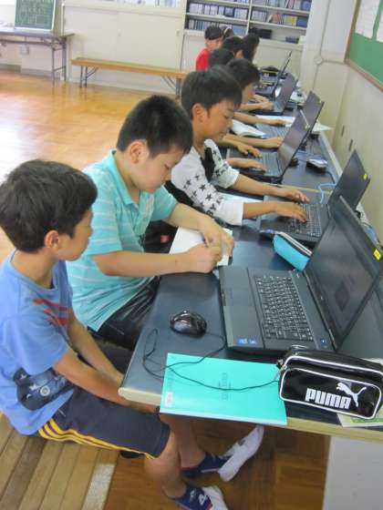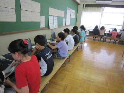 6年2組では,コンピュータ室を使って,6日に学習する「討論会」のデータ集めをインターネットを使ってしていました。
