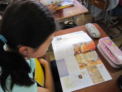 6年1組では,社会科のはじめに,前の時間に学習した「大仏づくり」のことを復習していました。