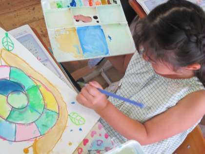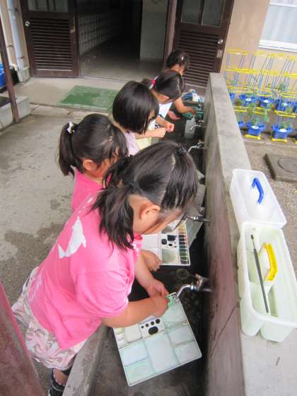 楽しく活動した後,パレットや水入れをきれいに洗っていました。