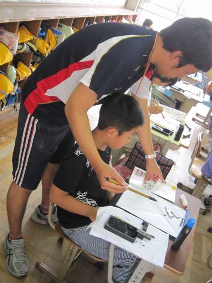 今日は,筆でたてや横の線を書いていました。
