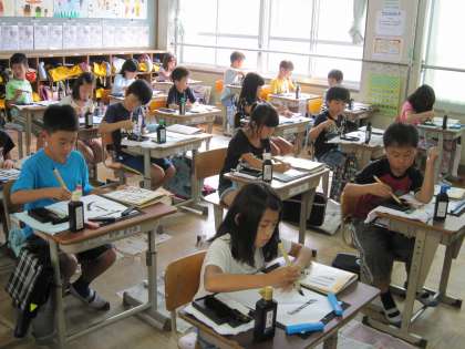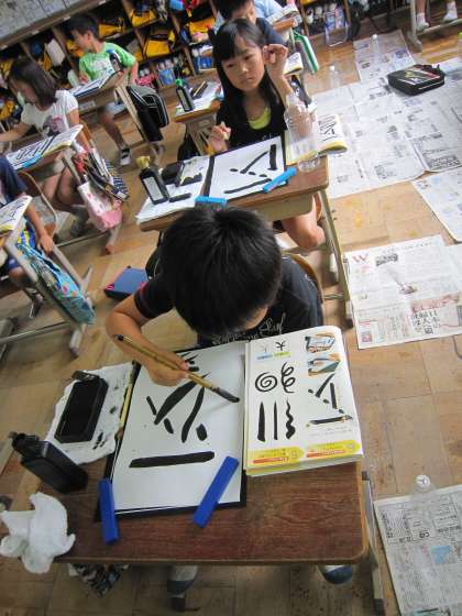 3年2組では,習字の学習をしていました。