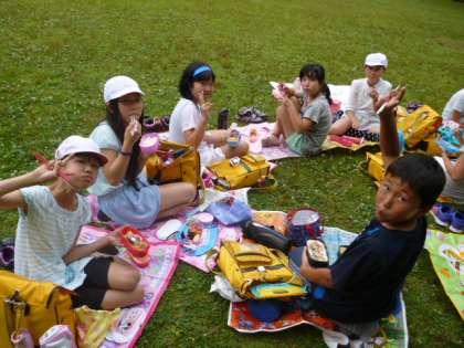 横大路運動公園で昼食です。天候に恵まれ,とても涼しく,過ごしやすかったです。
