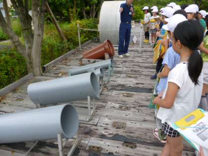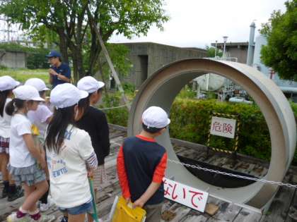 家庭にあるものは細く,少しずつ集まりながら水環境保全センターへ届くので,最後の方は大人1人が立って入れるほどの太さの配管となります。
