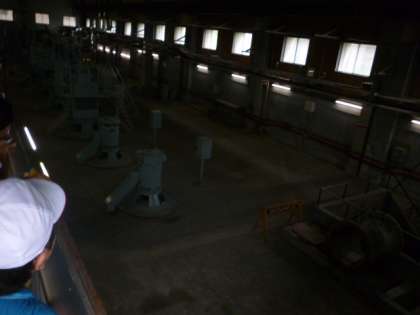 下水は地下の深いところでためられています。しかしきれいにするためには上にあげなければなりません。そこでポンプを使ってひきあげます。学校のプールなら数秒で満杯にできるほどのパワーがあるそうです。