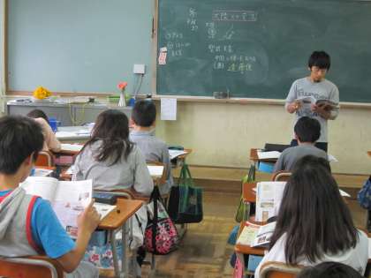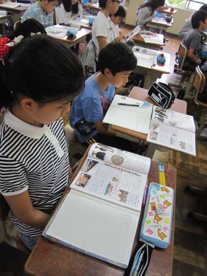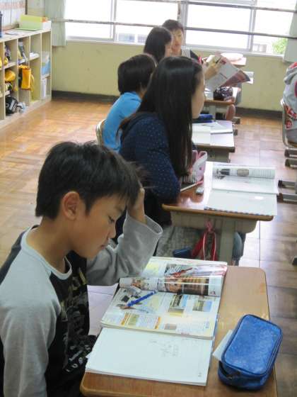 「どうやって大陸まで行ったと思うかな。今のようにエンジンはないよ。」「・・・」「かぜ?」と自信がないような返答が聞こえてきました。「そうですよ。」という担任の声の後,「ぼくやったら行けないと思うわ。」というつぶやきが聞こえてきました。こうして考えることで,遠い昔の出来事を自分のこととして考えられるようになっていくのです。
