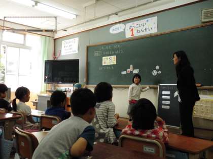 1年1組では,2校時に算数で「いろいろなかたち」の学習をしていました。
