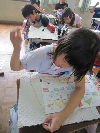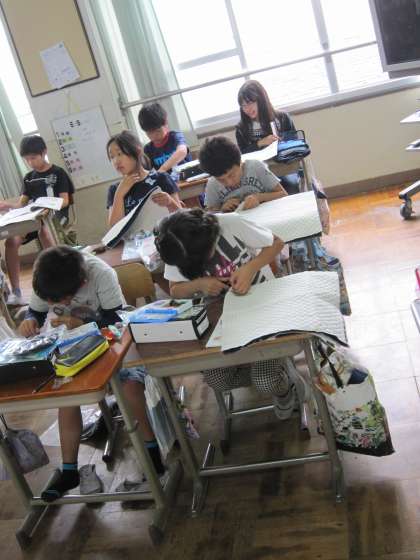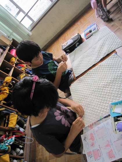 5年生は,家庭科の学習でナップサックづくりに取り組んでいます。