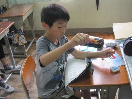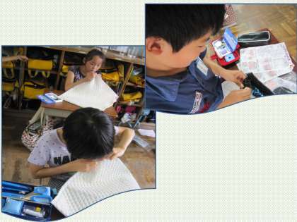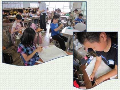 子ども達は,慣れない手つきで針をもって縫っていました。