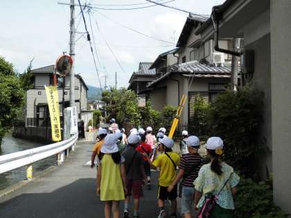 2年生は,みんなで今日の1・2校時に校区探検に行きました。今回は,学校よりも北側の校区を探検しました。