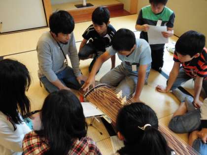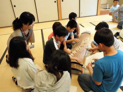 総合的な学習の一環として6年生の琴教室がふれあいサロンで開催されました。地域のお琴の先生を講師にお招きして,日本の代表的な曲「さくら」の演奏のやり方を教えていただきました。子ども達は普段見慣れない楽譜を見ながら一音一音弦をはじいてきれいな音を響かせていました。