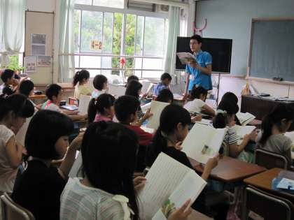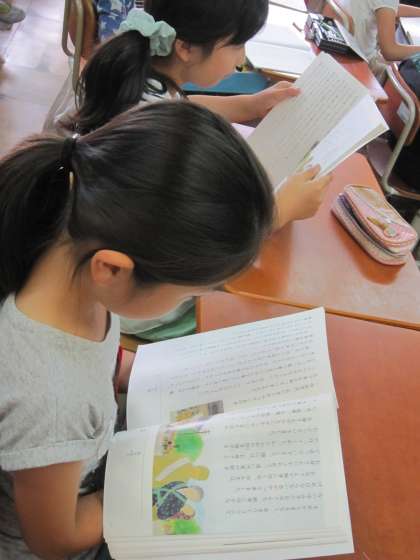 4年2組では,国語の時間に「一つの花」の音読をしていました。