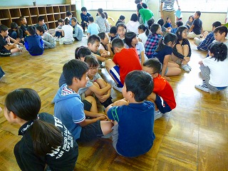 山の家に向けて,学年集会を行いました。山の家で頑張りたいことや,山の家を通して身につけたい力などを話し合いました。この話し合いをもとに,山の家での学年のスローガンを決めていきます。