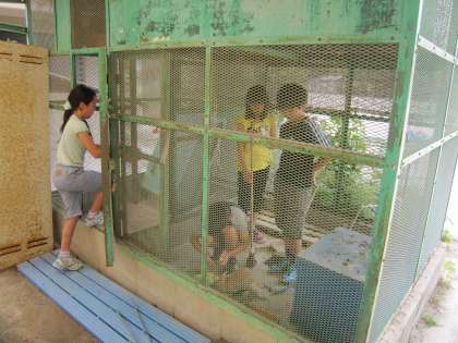 今日も,中間休みに今日の当番の子たちが掃除をしたり餌を与えたりしていました。