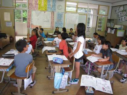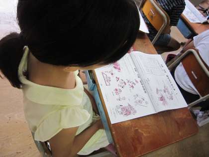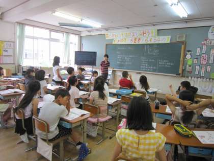 4年1組では,安全ノートをしていました。今月は,「道を渡るときについて考えよう」です。安全に道を渡るにはどういうことに気をつけるかをみんなで考えていました。