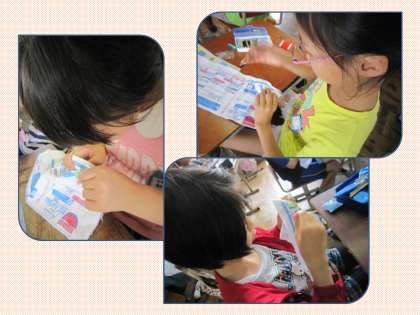 5年2組では,ボタンつけの練習をしていました。