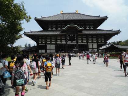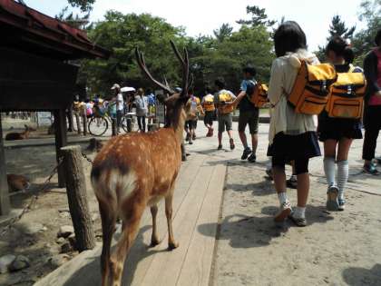 その大仏殿までの道中には,たくさんの鹿がいて,子どもたちも喜んだり,びっくりしたりしていましたが,大仏殿の大きさにさらに驚いていました。