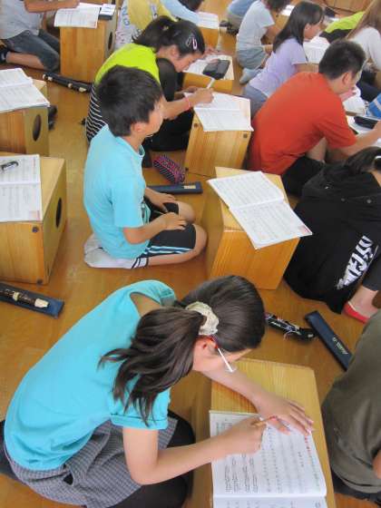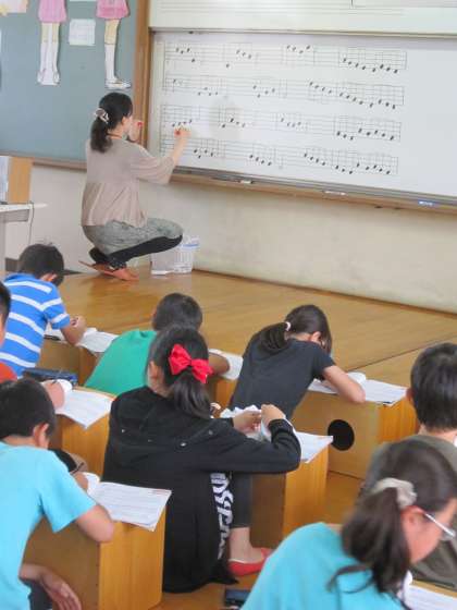 6年1組では,音楽でカノンをリコーダーで演奏しようとしていました。