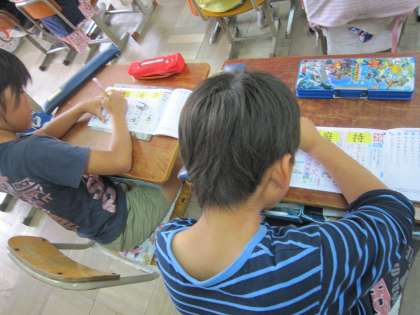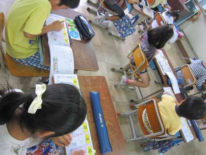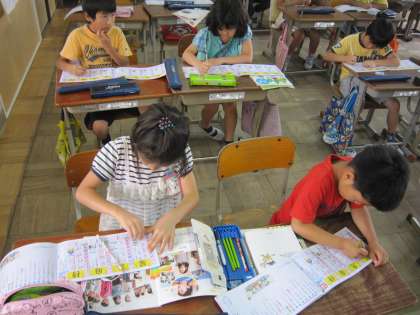 3年1組では,漢字ドリルを使って新しく学習した漢字の練習をしていました。