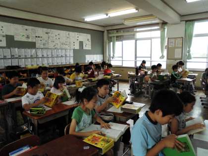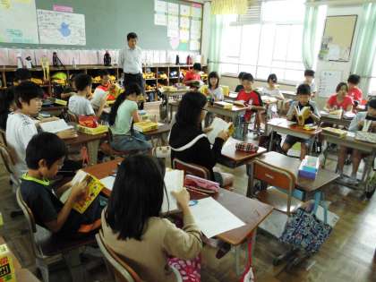 あじさい読書週間の取組として,図書委員の子どもたちが,高学年対象に辞書早引き大会をひらきました。5年1組・2組の子どもたちが,チャレンジしました。
