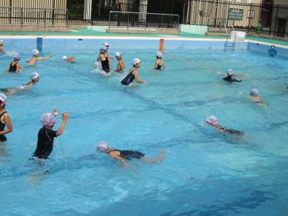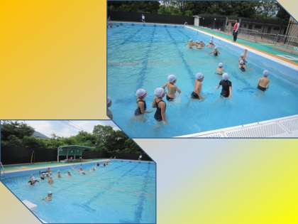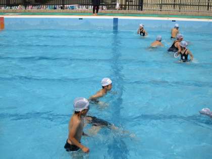 2年生も70cmの深さのプールに入り水遊びを楽しんでいました。