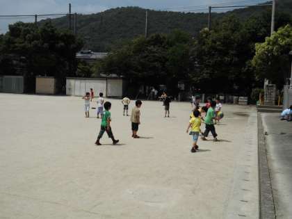 子ども達は,運動場でボールや遊具で楽しく過ごしていました。